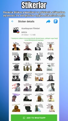 Descoperiți stickere gratuite și cele mai populare din Azerbaidjan, compatibile cu WhatsApp™ și Telegram™. Această aplicație unică oferă o colecție variată de stickere și conținut suplimentar, îmbogățind conversațiile voastre.