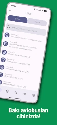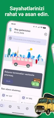 Concepută pentru a satisface nevoile diverse ale utilizatorilor, aplicația dispune de o interfață multilingvă, asigurând o experiență intuitivă pentru toți, indiferent de limba preferată. Personalizați-vă interfața alegând dintr-o gamă variată de teme de design, adaptând aspectul aplicației gusturilor dumneavoastră. Pentru o comoditate sporită, instrumentul indică și locația terminalelor cele mai apropiate unde puteți reîncărca cardul de transport, facilitând achitarea rapidă a călătoriilor. Toate autobuzele urbane din Baku sunt acum la un click distanță, transformând fiecare deplasare într-o experiență eficientă și plăcută.