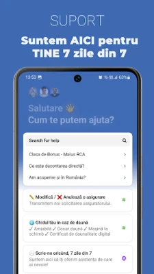 Dincolo de asigurarea RCA, Reasig este partenerul tău complet pentru o gamă extinsă de protecții. Ai posibilitatea de a solicita rapid asigurări medicale de călătorie, polițe PAD sau facultative de locuință, asigurări Casco sau asistență rutieră suplimentară. Chiar și profesioniștii își pot gestiona necesarul de asigurări obligatorii, precum cele pentru călători și bagaje (pentru servicii de TAXI, UBER, BOLT) sau malpraxis, direct din aplicație. Echipa de asistență Reasig este disponibilă 7 zile din 7, gata să răspundă întrebărilor tale prin chat-ul dedicat, oferind soluții rapide și eficiente. Uită de documentele fizice și de căutările interminabile; totul este centralizat, securizat și la îndemână, direct de pe telefonul tău.