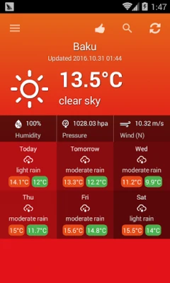 Pentru a asigura accesibilitate maximă, **Hava Azərbaycan** permite vizualizarea prognozelor offline odată ce datele au fost stocate în cache, o caracteristică extrem de utilă în călătorii sau zone cu conectivitate limitată. Vă puteți planifica cu încredere activitățile, beneficiind de o prognoză detaliată pentru următoarele șase zile. Adăugați cu ușurință orașele preferate pe ecranul principal pentru acces rapid și bucurați-vă de suportul multilingv, un aliat de încredere în explorarea diversității culturale și geografice a Azerbaidjanului.